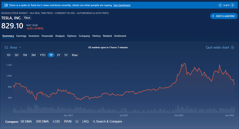 And just the day before, Tesla announced its 2021 results, achieving full-year revenue of $53.8 billion, up 71% year-over-year; net income of $5.5 billion, up 665% year-over-year; and earnings per share of $4.90, up 666% year-over-year. In addition, Tesla said that it achieved the highest quarterly operating margin of any mass-production vehicle company in the fourth quarter.